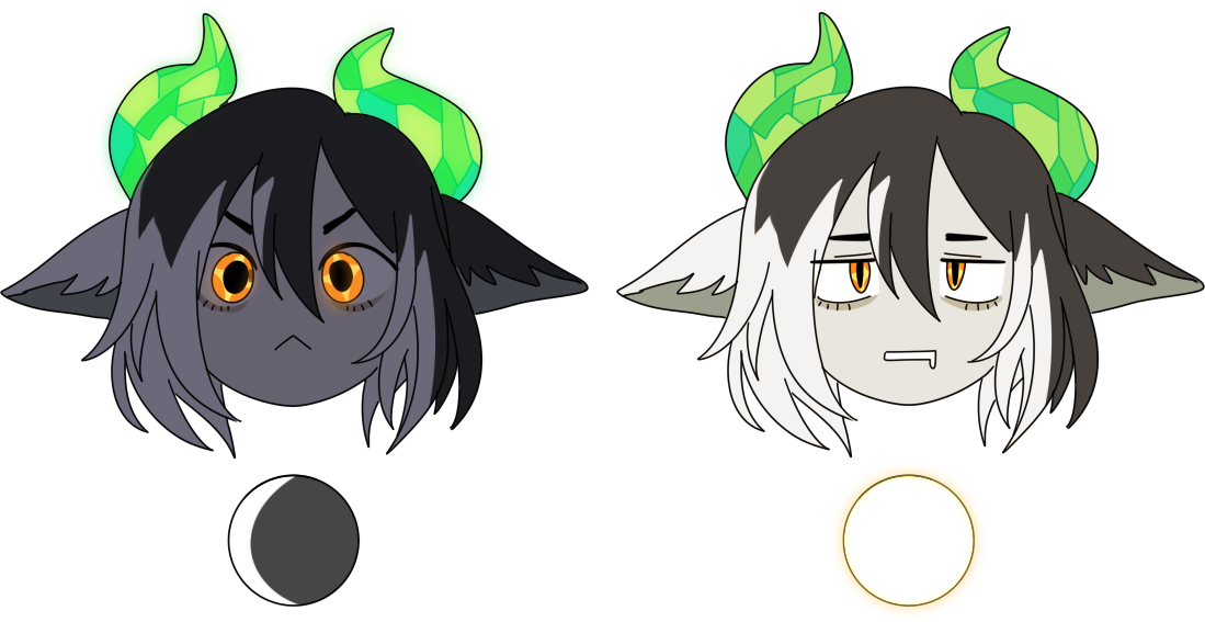 Q. how did the curse begin?A. about a hundred years ago, a meteor crashed into the moon. the moon soon began to crystallize internally. in the light it reflected to earth at night, the crystalker curse came to earth, and sank into the earth and sky.Q. how is one afflicted by the curse?A. it's rumored that it's the very moonlight that causes it..many humans and unafflicted individuals keep inside at night, for fear of being stricken with the curse.Q. how are crystalkers seen by society?A. crystalkers are known across the world, but are generally regarded as freaks by those who aren't afflicted by the curse, and often regarded with fear and distrust. they tend to clump together in social groups.Q. can crystalkers still fit into normal society?A. while ears, tails, and horns may be normal fare, being crystallized is not. however, if a crystalker needs to hide their curse, there are various ways to go about it. crystal patches on the skin may be dressed with a specially formulated powder, set to cover the area and give it the appearance of skin. similar powders are available for the horns, as well as horn covers. mutations such as shards, overgrown limbs, etc, may not be so easy to disguise..Q. how does the curse appear on the body?A. the crystal curse starts on two points at the head, creating horns, and burrows into the body from there, cursing them from the inside out. the crystal grows steadily within them to a point, replacing their organic body over the period of a few months, up to a year. once it has reached its peak, it will stop growing, and the curse's transformation is complete. typically, the curse is not strong enough to infect more than 30% of the body. stronger curses are noted in rarer crystalker rarities.internal crystallization takes the longest. external crystallization can appear in days.Q. how does a crystalker stay alive when their organic body is crystallized?A. the crystal that takes over an infected person's body isn't quite the crystal we know on earth. it's in fact an unknown crystalline substance, which humans don't quite understand yet. lifeblood, energy.. it transfers through the crystal like a blood vessel, or like an electricity conductor. it can function as surrogate flesh, organs, etcetera, keeping the cursed one alive even as it replaces their organic matter.regular exposure to moonlight is required to keep this crystal functioning, and their body working with the replaced parts.similarly, having smaller horns lowers chances of survival, as less moonlight can be channeled into their body.Q. what about the actual crystal surface?A. the crystal surface can present as raw, tumbled, polished, etc. it may present as clear, lustrous, cloudy, gritty, etc. all as crystal on earth does.Q. may my crystalker's crystal be based on a real gemstone?A. yes. although it isn't necessary to base it on a real gemstone, you are free to do so, including giving it patterns, stripes, etc that would be found on the gem.Q. how hard is the crystal on a crystalker's body?A. this depends on the individual, and the crystal type, if you have chosen to base it on a real gemstone and its hardness scale. they can range from as fragile as chalk to as sturdy as diamond. a fragile crystalker would likely be almost terminally ill, as the crystal would not be able to feed well off of their body. a diamond hardness crystalker would be the absolute picture of health.Q. what if their health state changes? does the crystal change?A. the crystalker curse is somewhat locked into the state it formed in when it first forms on the body. so if the afflicted individual's crystal forms on a weak, sickly body, even if they become very healthy, the crystal will remain relatively weak and fragile, even though it's feeding well now.Q. do crystalkers age?A. crystalkers do age, but at a slowed rate. the crystal around them may shift to adjust a growing body, if they were infected as a child.Q. can the crystal bend/flex?A. yes! if it replaced a part of the body that could normally do so, eg the flesh of the elbow, it will be able to move with it if you so choose. if you prefer the idea of the crystal making that part of their body stiff, that's fine too.