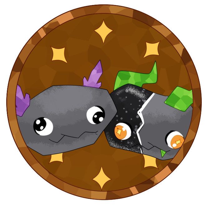 a strange geode that gained sentience from the moon! he has a very outgoing and rambunctious personality and loves to make others laugh! he strangely likes rock candy..rarity: legendary